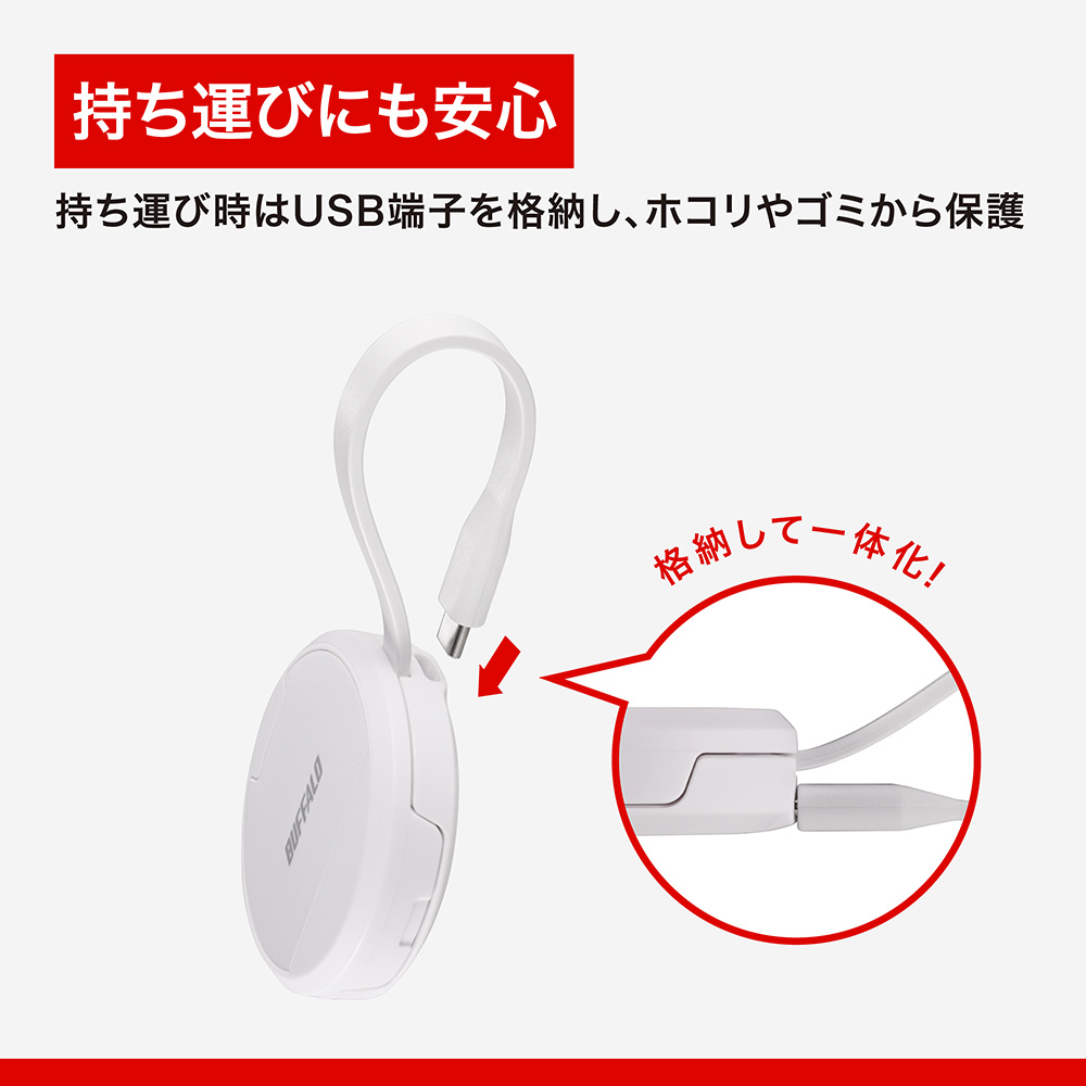 充電不足を気にせず使用できるので、大容量のデータ転送時も安心です。