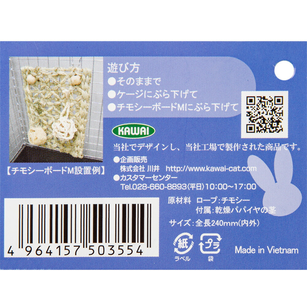 ●ケージや別売のチモシーボードMにぶら下げて遊ばせることができます。