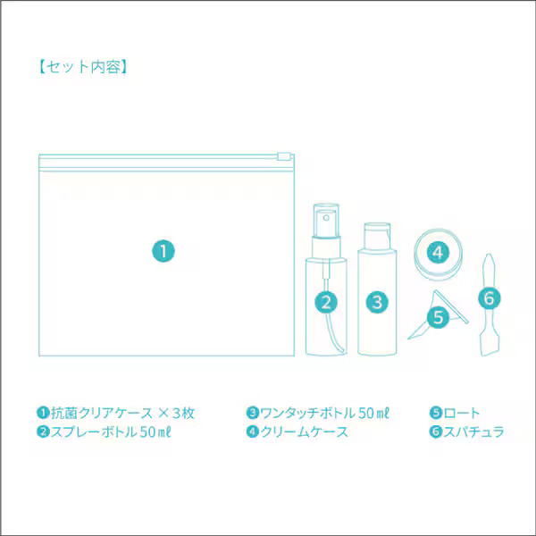 SIAA取得抗菌生地使用のクリアケース3枚付き、国際線での機内持ち込み対応サイズの詰め替えボトルセット。