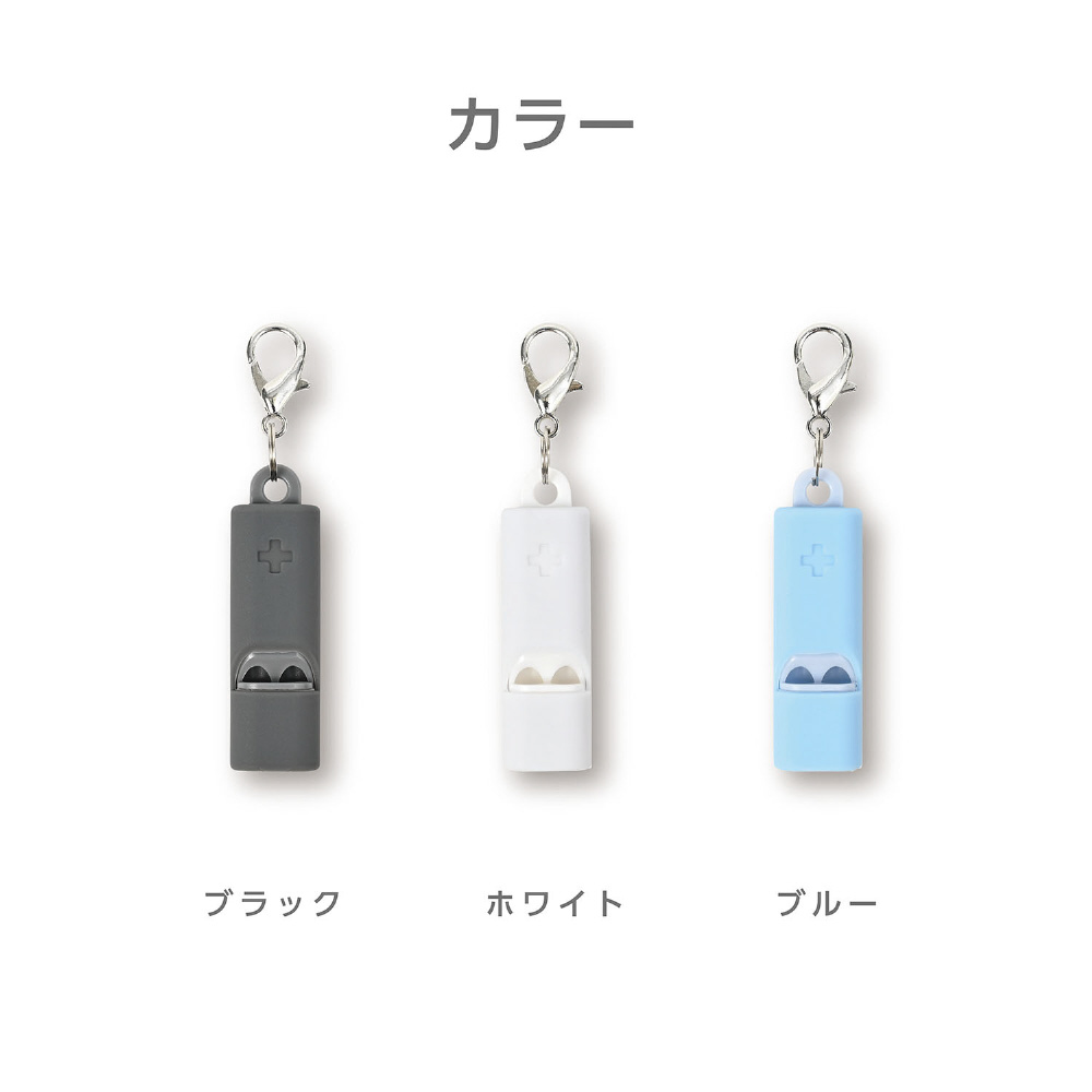 ・超コンパクトでも大音量110dB ・2種類の音で騒音の中でも聞こえやすい ・吹き口がシリコンなので清潔でくわえやすい ・シリコンと樹脂のW構造で丈夫、首掛け紐付 ・書いて消せるメモ欄付、緊急連絡カード付