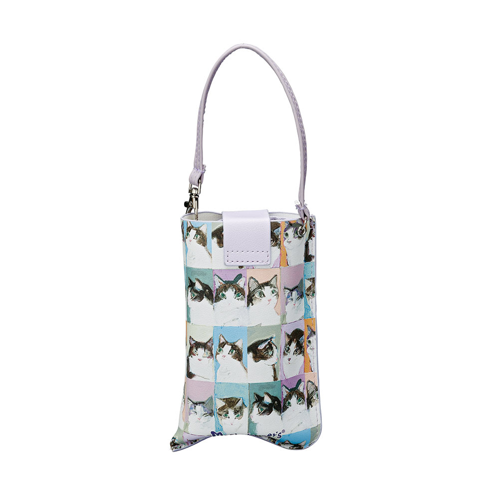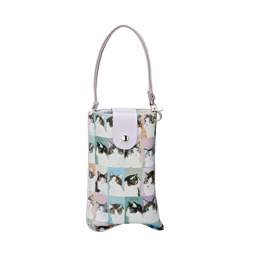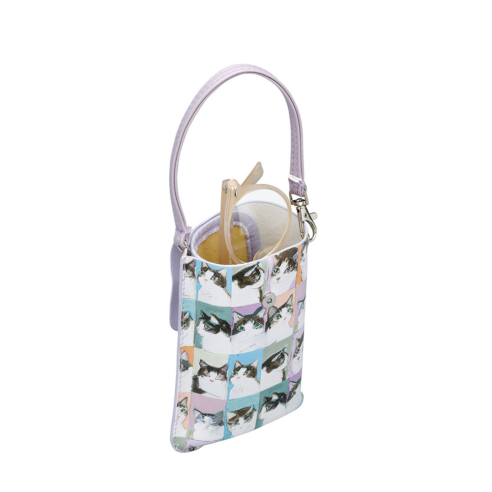 猫ちゃんが可愛く描かれている人気のマンハッタナーズのフラットメガネケース。出し入れ簡単でカバンにかけられるケースです。
