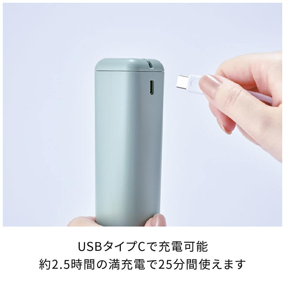 ・USB 充電式(タイプC)、コードレスで使用可能。