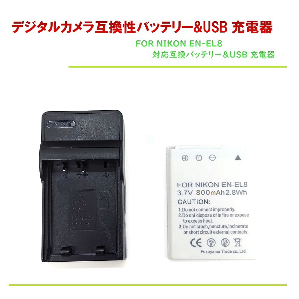 FOR NIKON EN-EL8用互換バッテリー&USB充電器セット