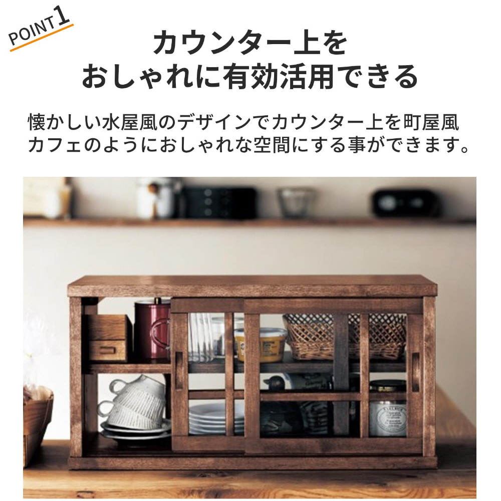 ●懐かしい水屋箪笥風デザインのカウンター上キャビネット