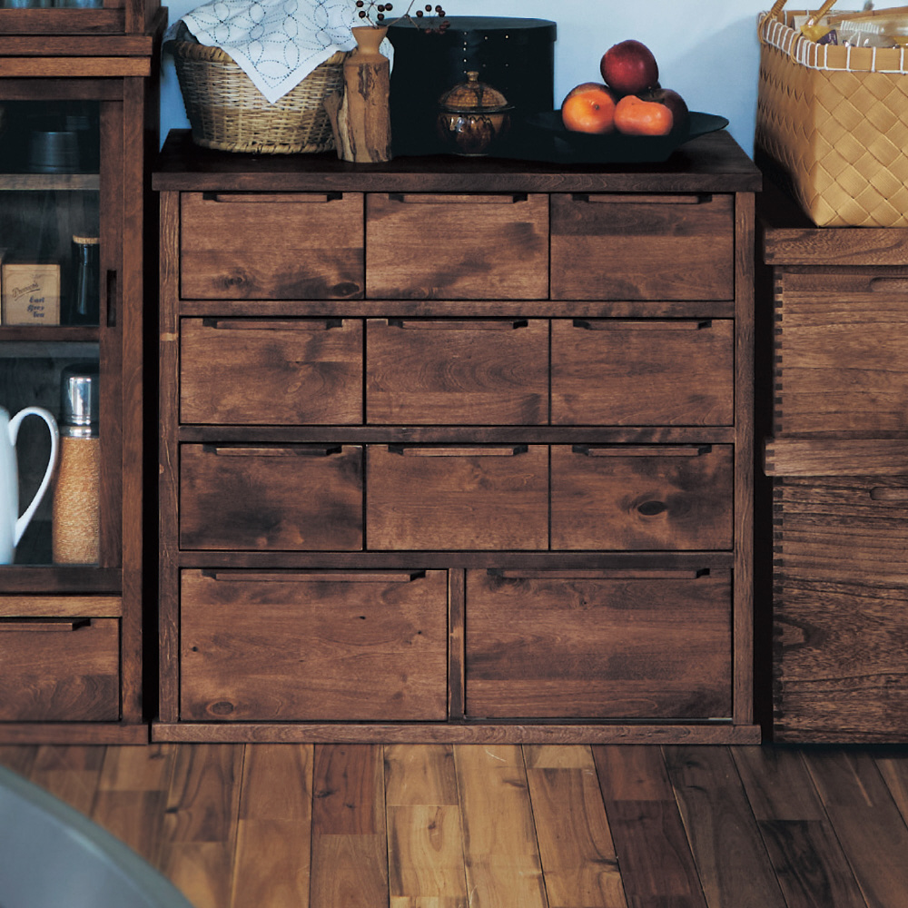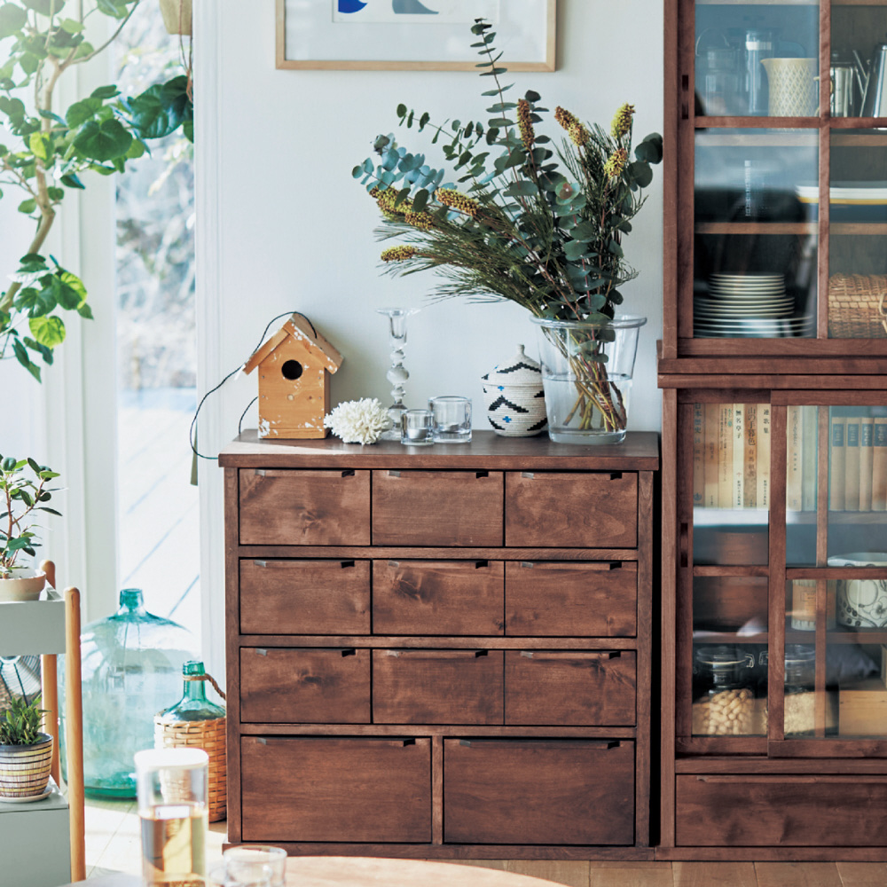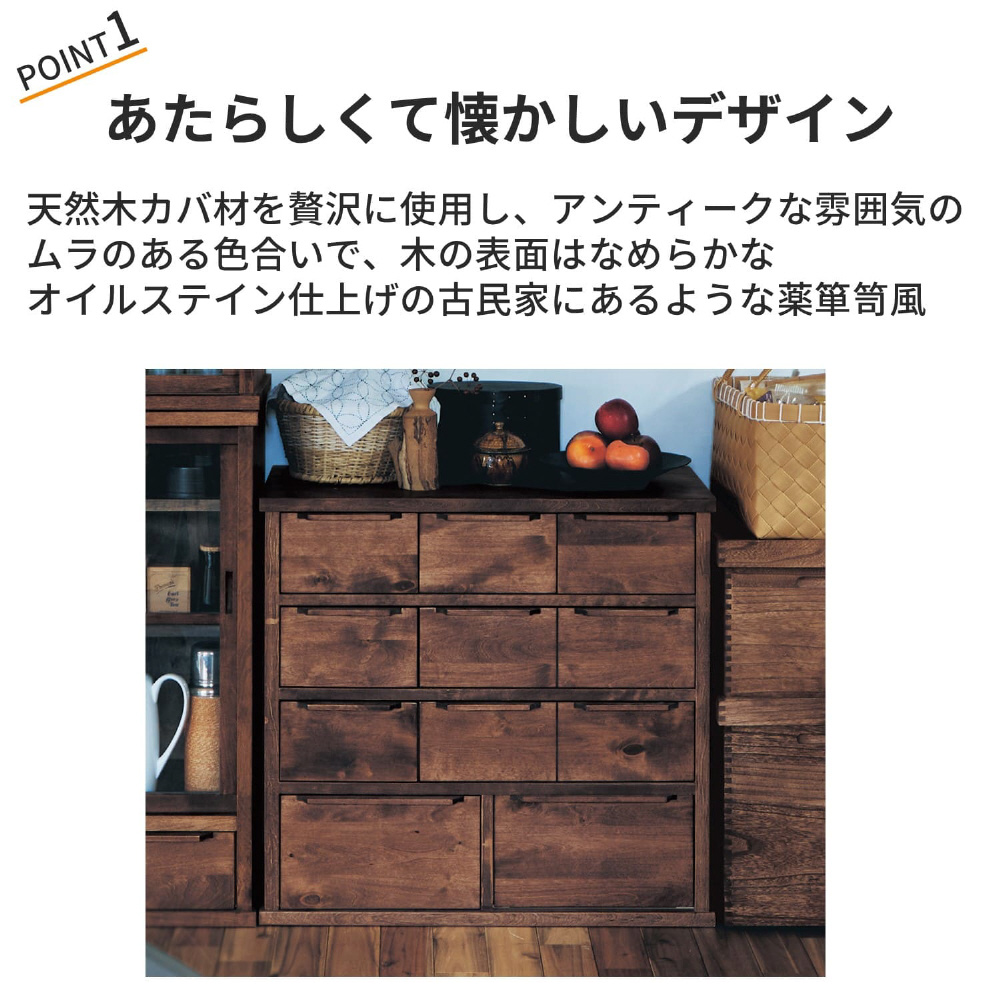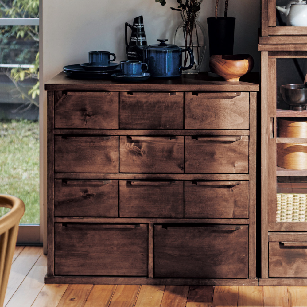 シリーズの「あたらしくて懐かしい。水屋箪笥風引戸キャビネット」との上下連結方法を見直しました。