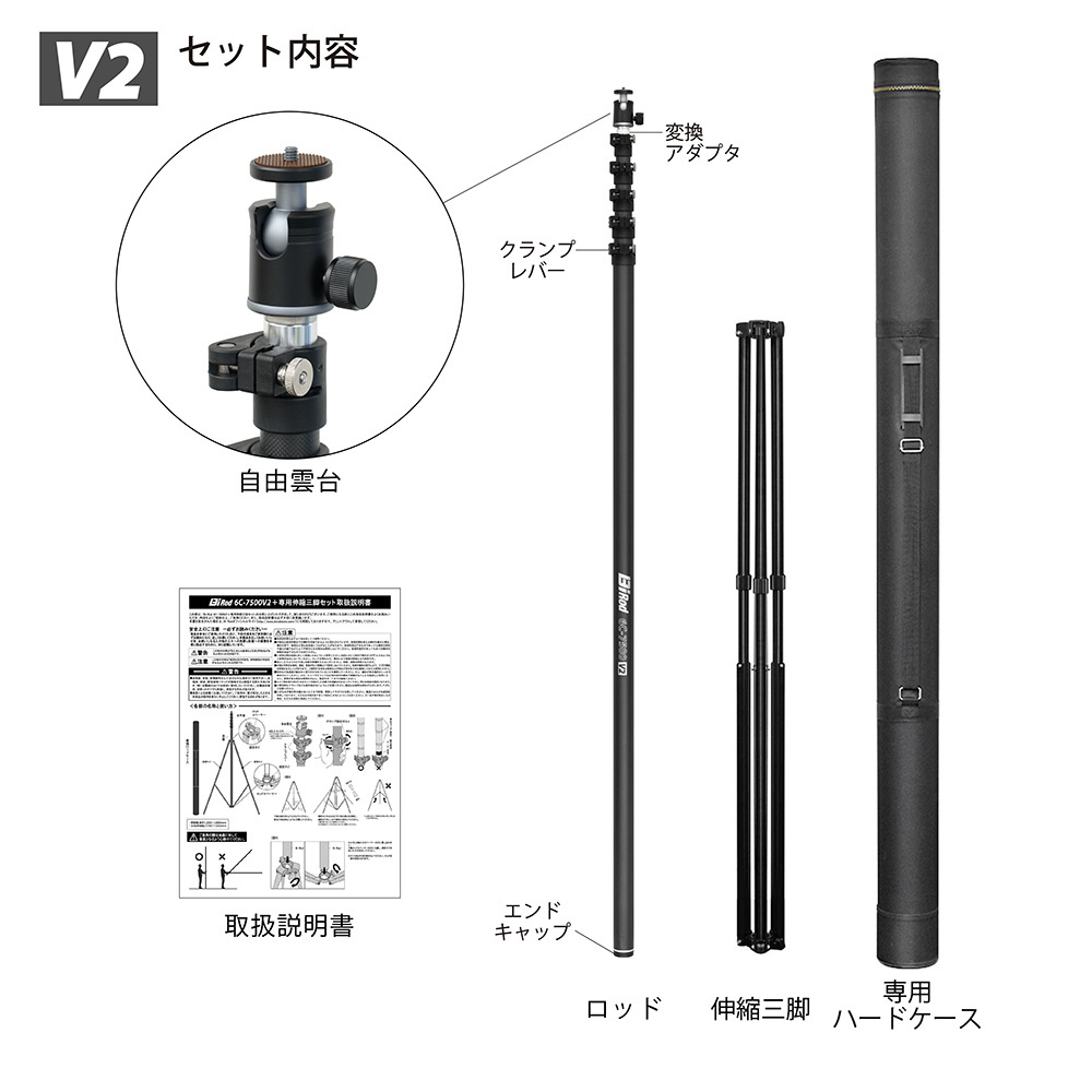 1.5m?7.5m伸縮可能なカーボンファイバー製のカメラ用ロングポール「Bi Rod(ビーアイロッド)」。待望の新型〈V2シリーズ〉が登場!
