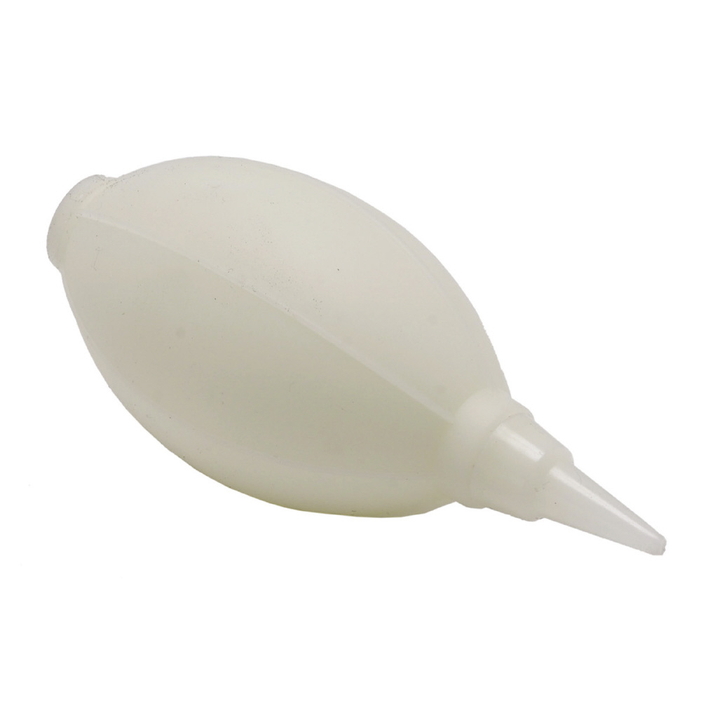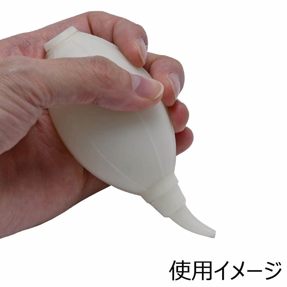 ワンショットで狙ったところえダイレクト噴射。ノズルはシリコン製でブロアー玉から飛び外れない安全設計。機材と一緒にバッグに収納しても傷を付けることがありません。手の平におさまり、握りやすいレモン型。高品質のシリコン素材を使用していますので、復元力・耐久性に優れています。空気逆流防止弁がついていますので、効率の良い作業ができます。