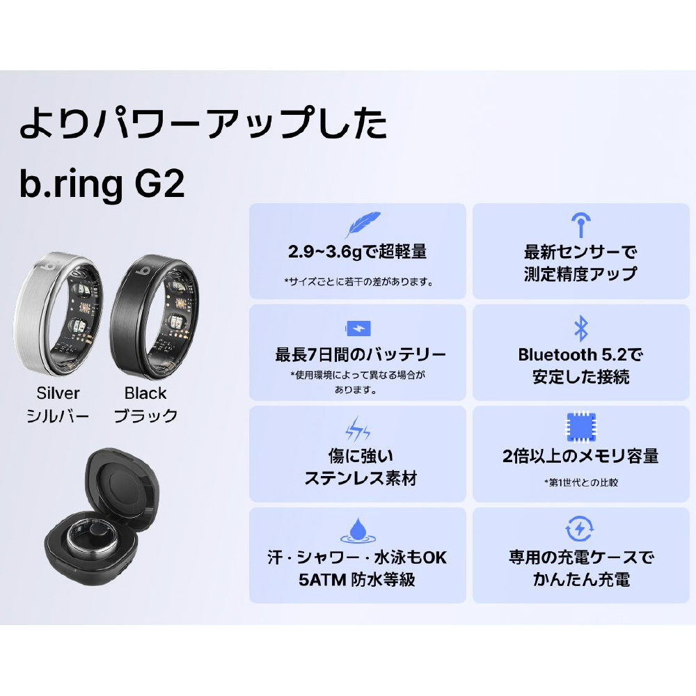 B105SSV2 b.ring(ブリング) G2 第二世代 AIスマートリング 睡眠・健康管理 10号(内周62.5mm) シルバー