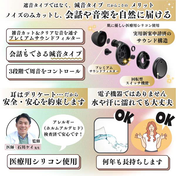 安心の日本国内ブランド「医師監修の耳栓専門店ハレトケ」の『スイッチ&ノイズコントロール』です。