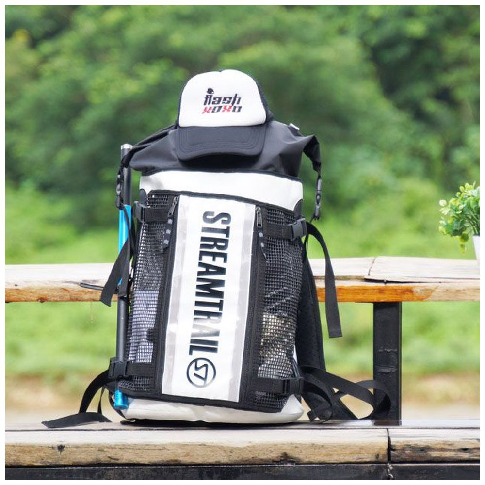 取り外しできるメッシュポケットが最大の特徴で、Stream Trailの他バッグと同様、高い防水性を備えています。