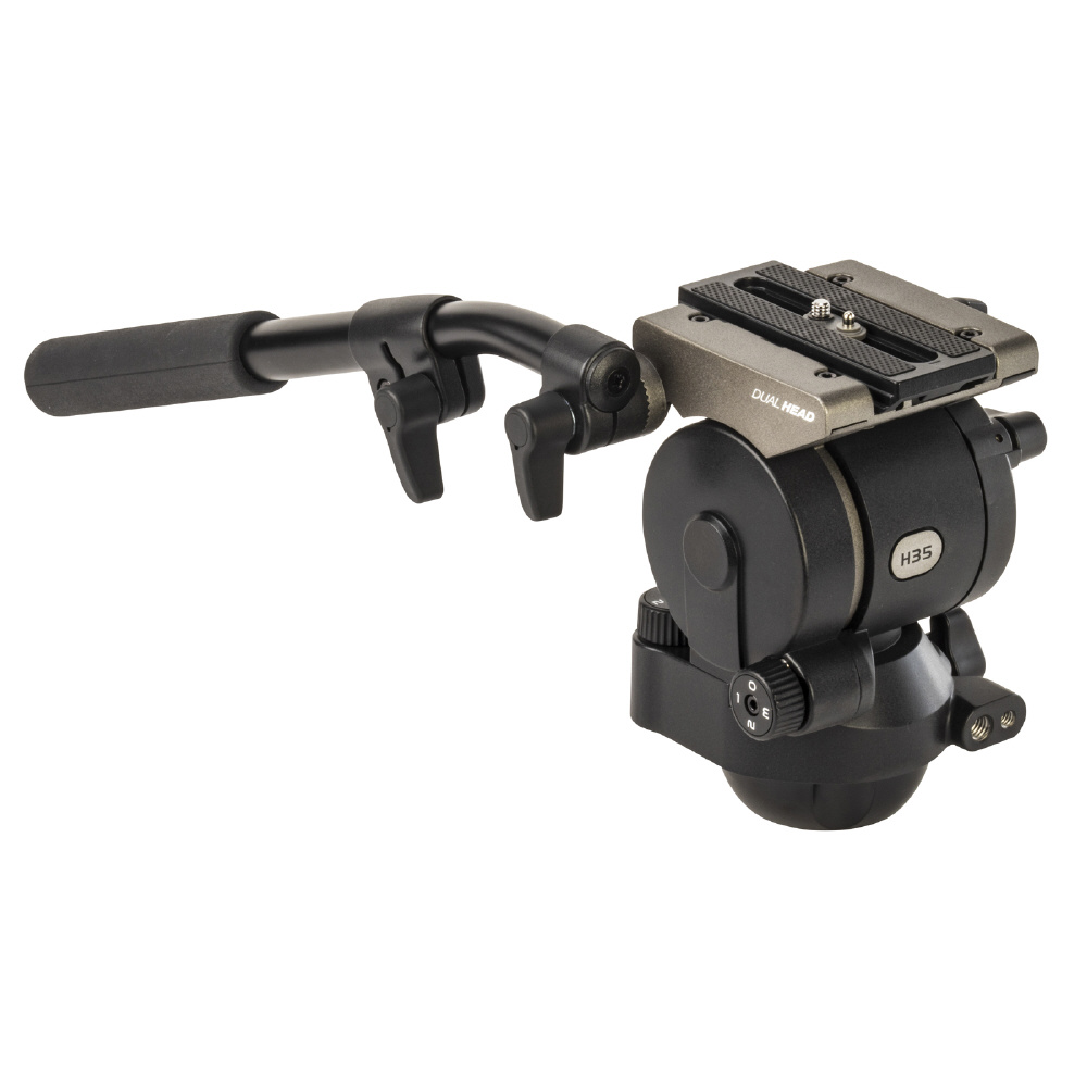 【特徴6】DUAL HEAD : 75mmボール三脚とフラットベース三脚、どちらにも取り付け可能なデュアルヘッド仕様。三脚だけでなく、スライダーやスケータードリー等に取り付けて使用することができます。