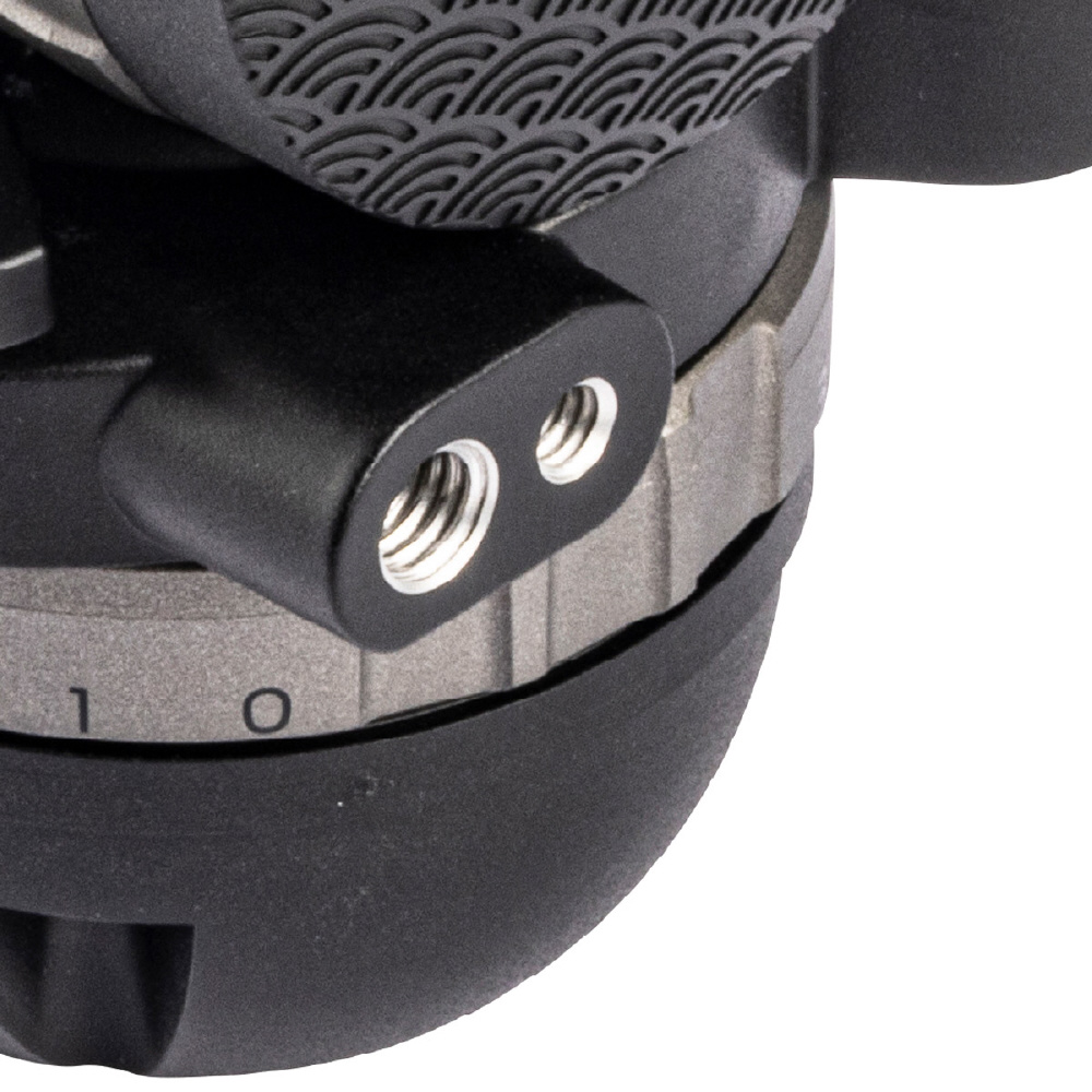 【特徴8】利便性を高めるアクセサリーポート : モニターやライトなどのアクセサリー類を取り付けられるよう、ヘッド側面に1/4、3/8 インチのネジ穴が設けてあります。ベース部分に設けてあるのでヘッドの搭載重量や重心高、前後バランスに影響を与えません。