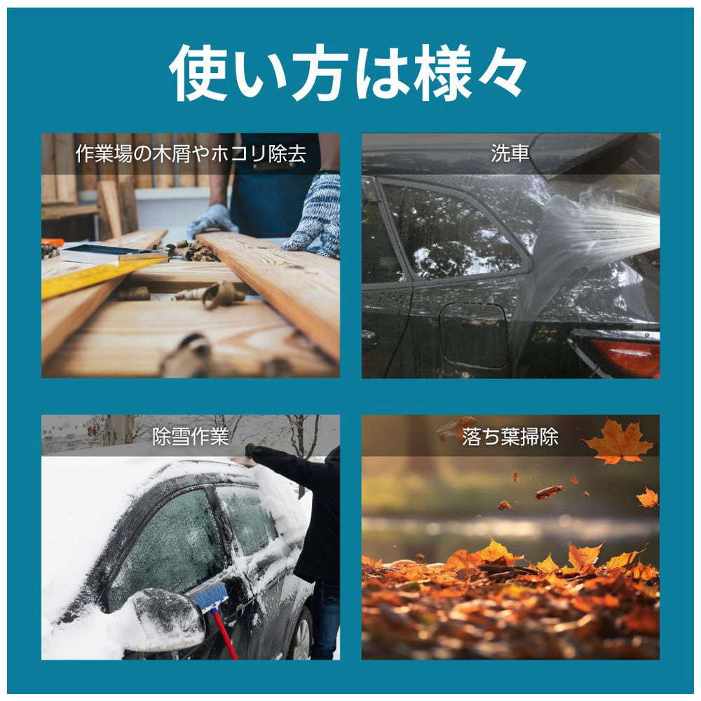 ブロワー本体に、バッテリーと充電器がそろい、初めての方でもすぐに使用開始できます。