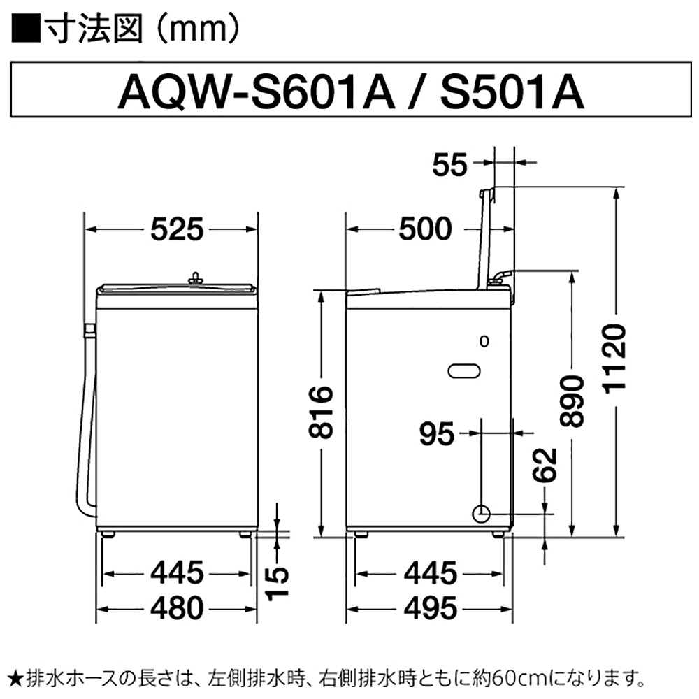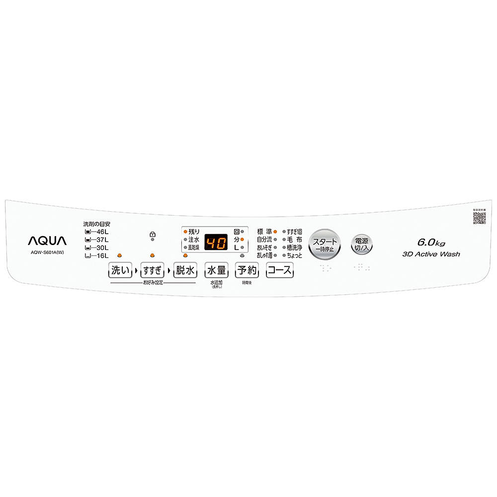 全自動洗濯機6Kg AQUA ホワイト AQW-S601A(W) [簡易乾燥(送風機能) /上開き]