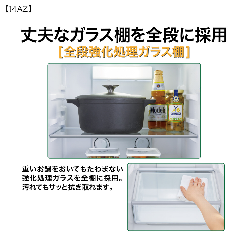 ■丈夫なガラス棚を全段に採用「全段強化処理ガラス棚」
