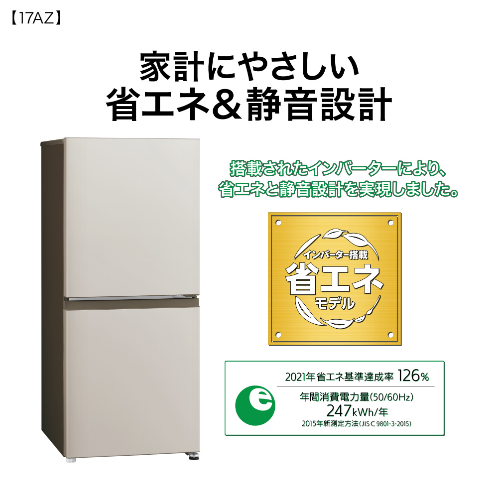 冷蔵庫 マットグレージュ AQR-17AZ-C [幅53cm /170L /2ドア /右開きタイプ /2025年]