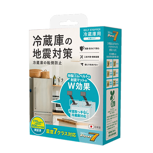 ■600L・170kg(内容量含む)までの大型冷蔵庫まで対応し、震度7クラスの揺れを再現した試験でも性能を実証済み。