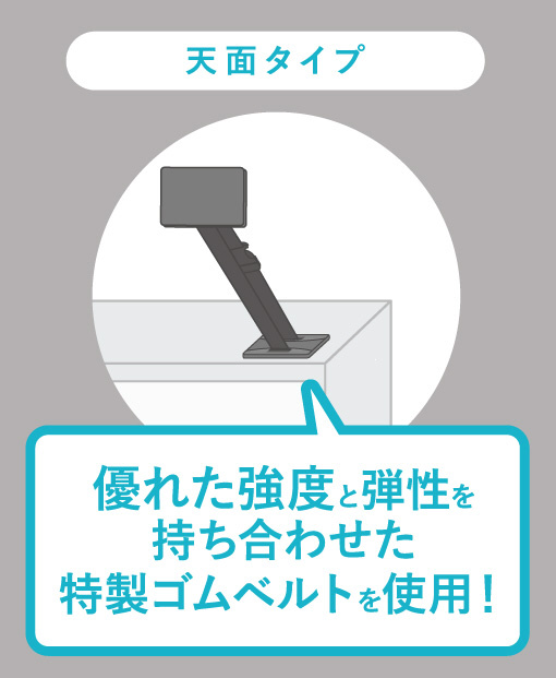■冷蔵庫の裏側に取っ手がない場合や既に設置して動かせない場合に天面を利用して固定するタイプです。