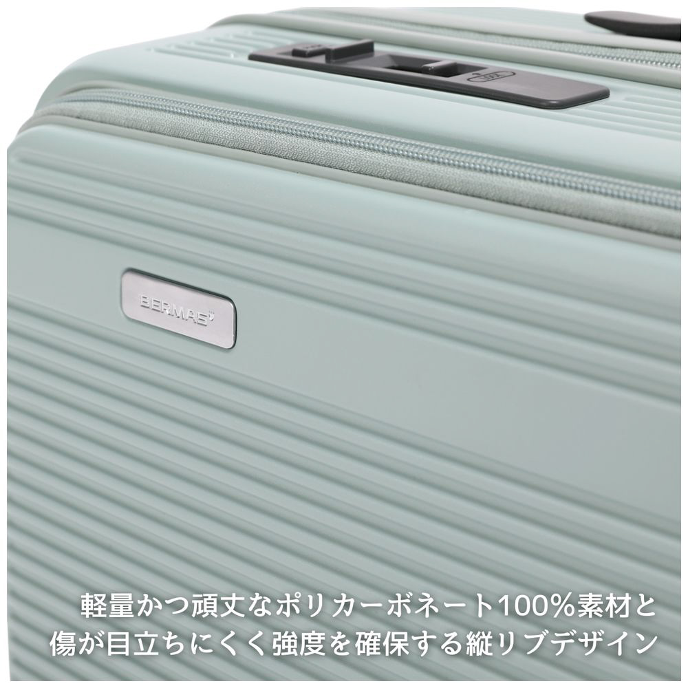 エントリーモデルでありながら、BERMASが培ってきた確かな品質と基本性能をしっかり搭載したフロントオープンスーツケース。軽量で耐久性に優れたポリカーボネート100%ボディと、キズが目立ちにくい縦リブデザインが、旅先での安心感と上質な佇まいを演出します。