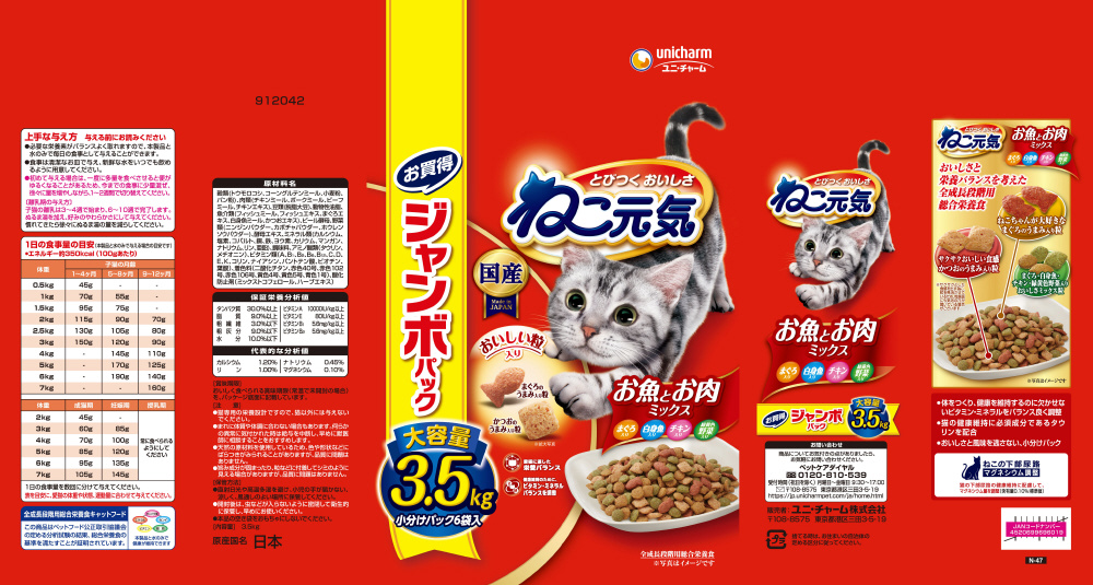ねこ元気 お魚とお肉ミックス まぐろ・白身魚・チキン・緑黄色野菜入り 3.5kg