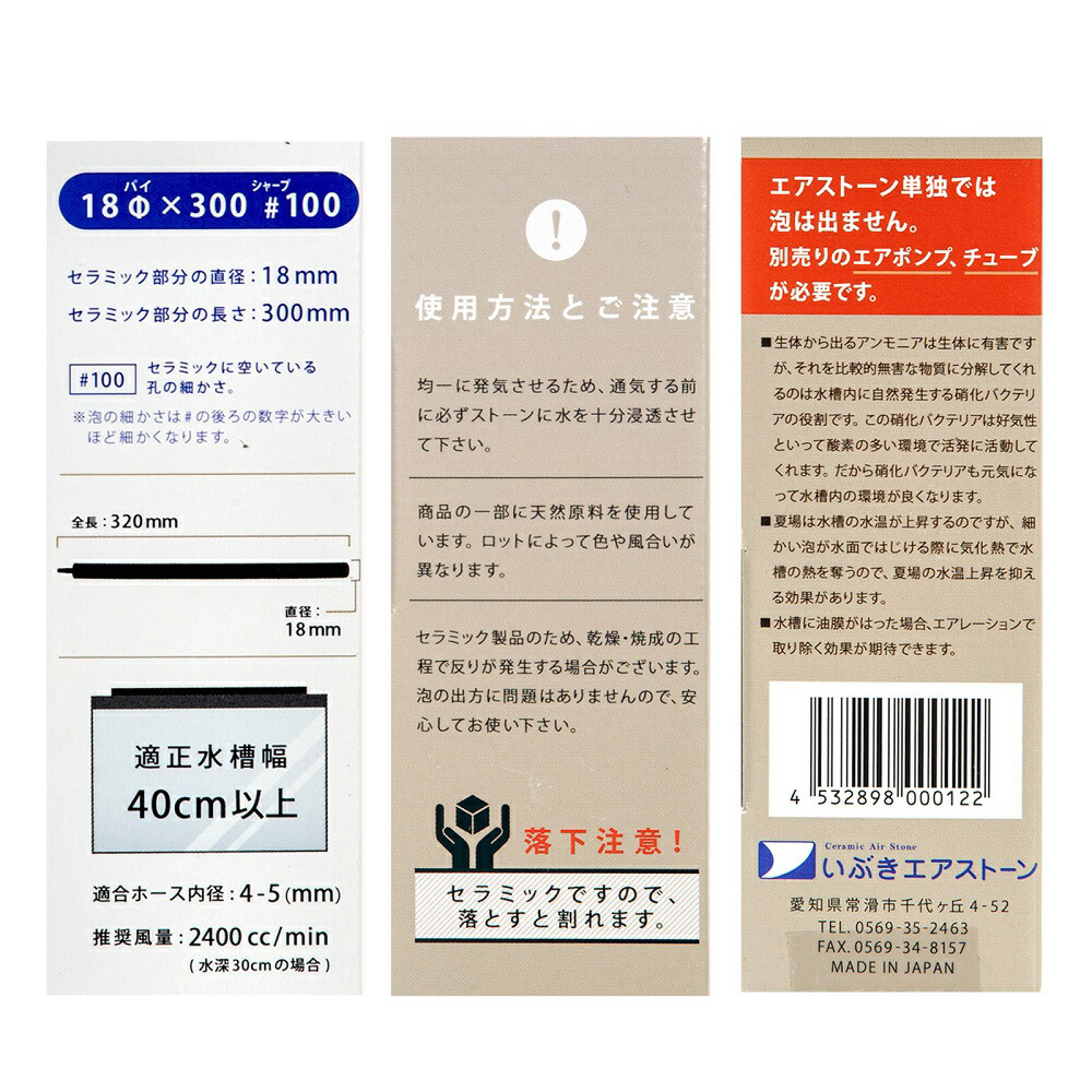 ご使用の目安:毎分1〜3リットル前後のエアポンプ、泡の細かさ:#100(標準サイズ)