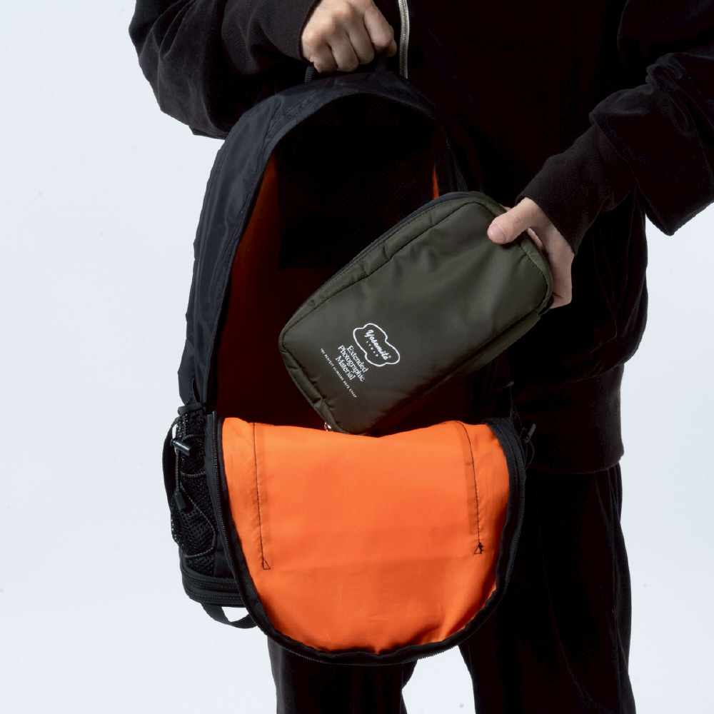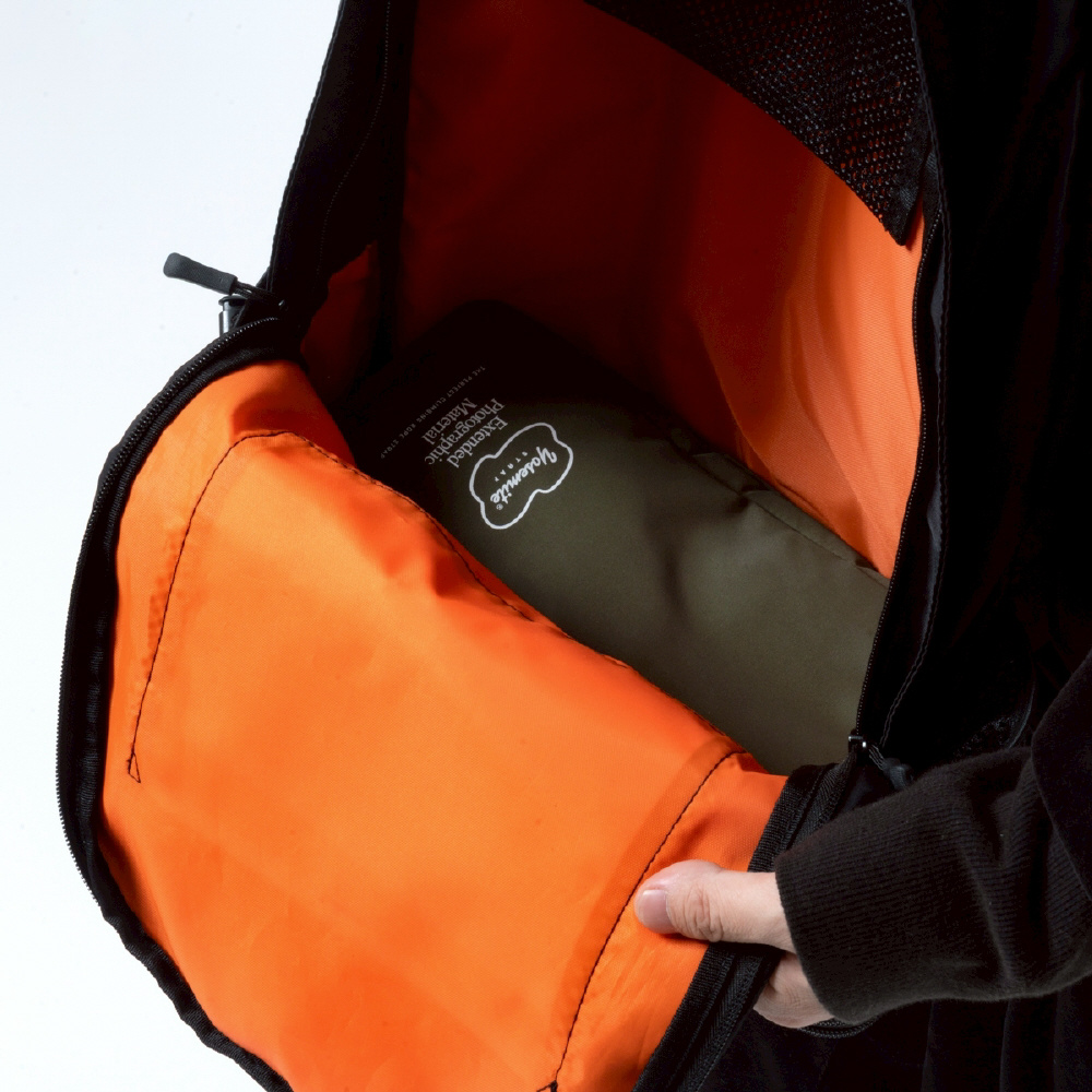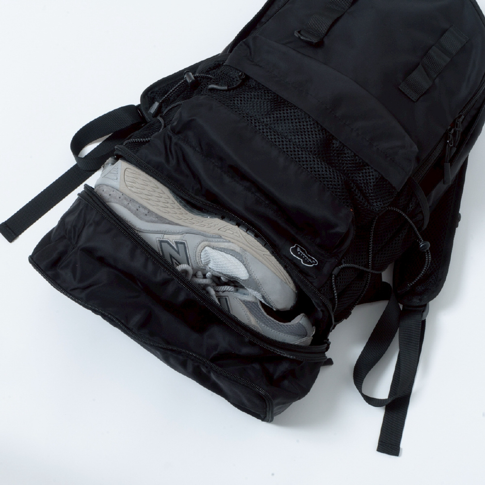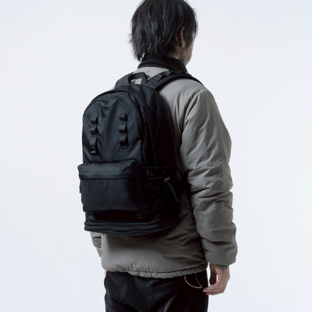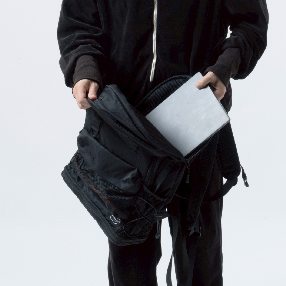 拡張部分も撥水加工生地の為、仕事や旅行先、ジムなどあらゆるシーンに対応できる便利なバックパックです。
