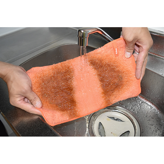 特殊繊維が汚れを掻きとり、絡み取ります。クロスについた汚れも水洗いするだけで落ちやすく、いつも清潔な状態でご使用いただけます。