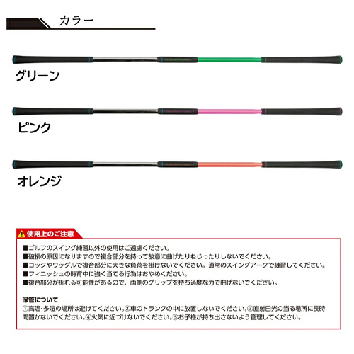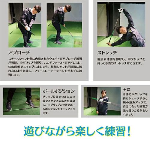 樹脂シャフト側のグリップを持ち、しなり戻りの感覚を習得。