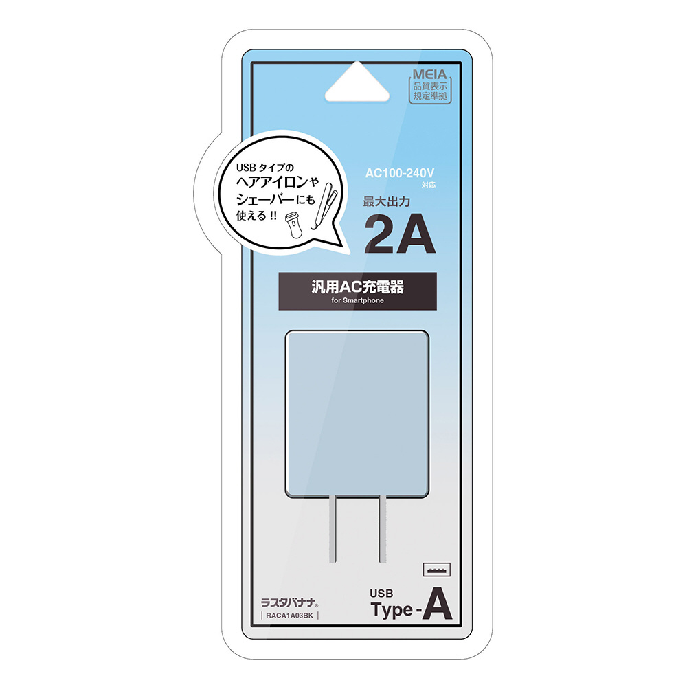 充電器 ACアダプター AC充電器 USBポート タイプA 2アンペア 汎用 コンセント AC USB Type-A typea 2A コンパクト スモーキーブルー 理美容家電 ヘアアイロン シェーバー