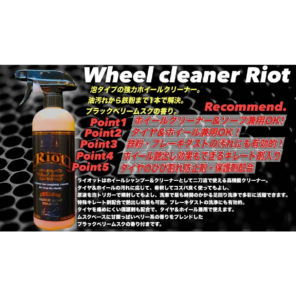 アルカリ性のホイールクリーナーはタイヤの劣化防止剤も過剰に分泌するデメリットが言われていますが、Riotはタイヤ保護成分・ひび割れ防止成分も配合しています。