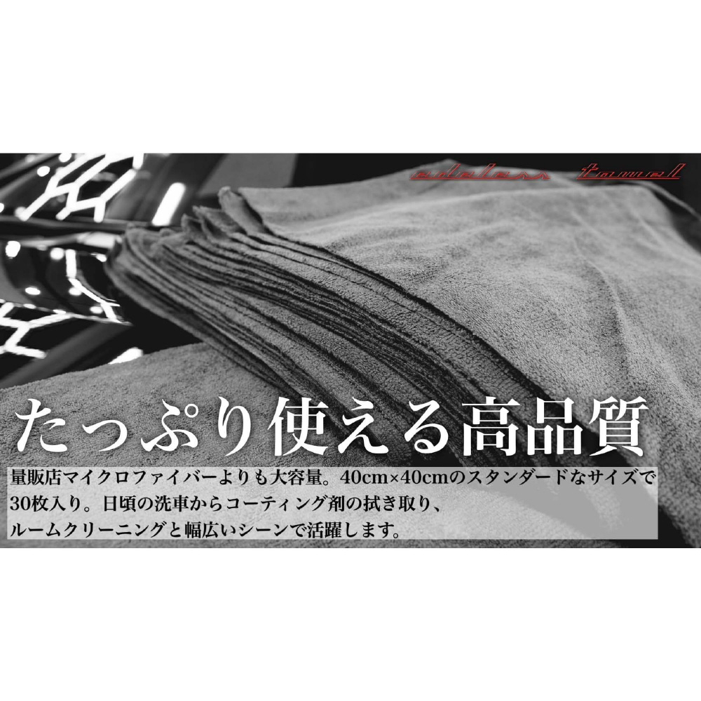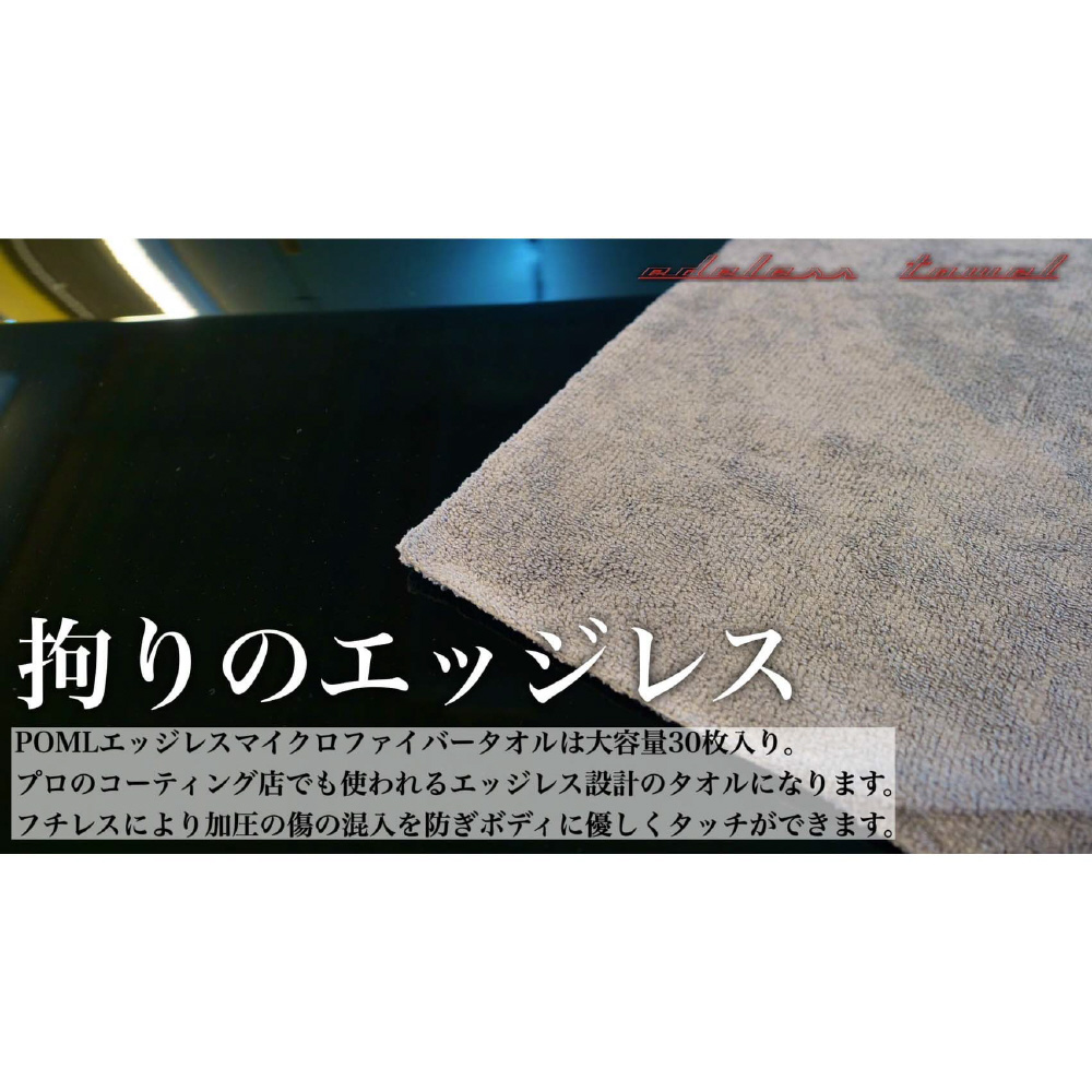 大容量30枚入のマイクロファイバータオルパック。お徳用でも妥協しない、使い勝手の良いマイクロファイバークロス。縁無しのエッジレス設計により拭き傷を限りなく削減できる。ダメージ混入の可能性を削減しながら拭き取りができるので、車に優しい。厚みも控えめなので細かいパーツのふき取りにもご使用いただけます。
