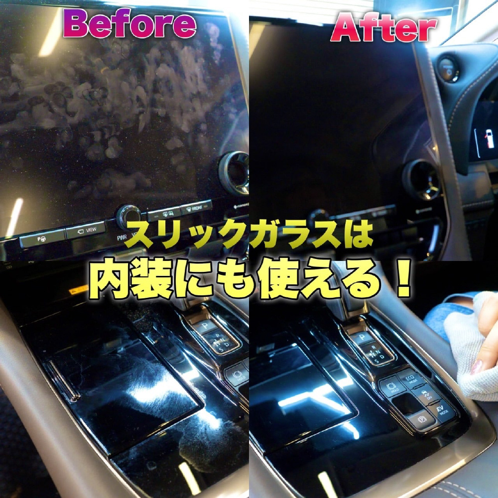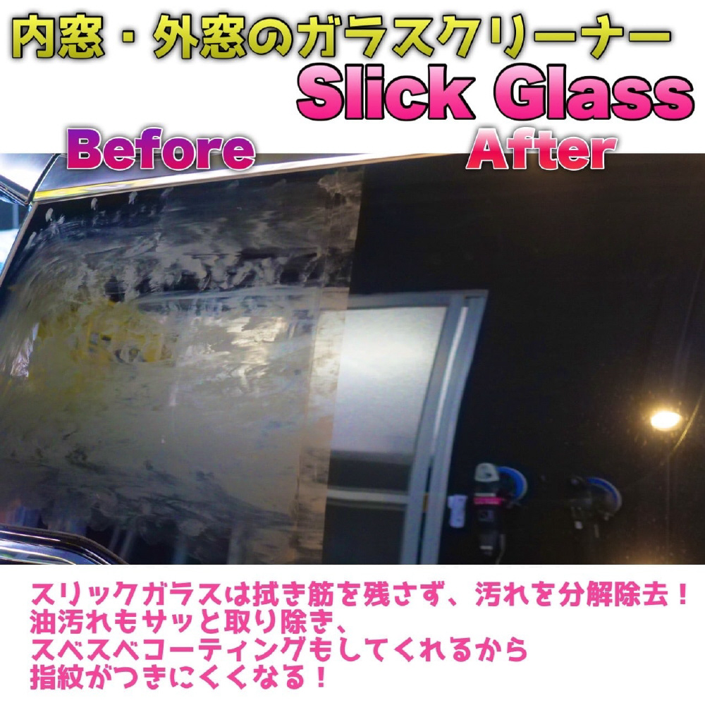 スリックガラスはガラスクリーナーとして発売していますが、ボディや内装、雑貨等ガラス以外の箇所にも使用が可能!