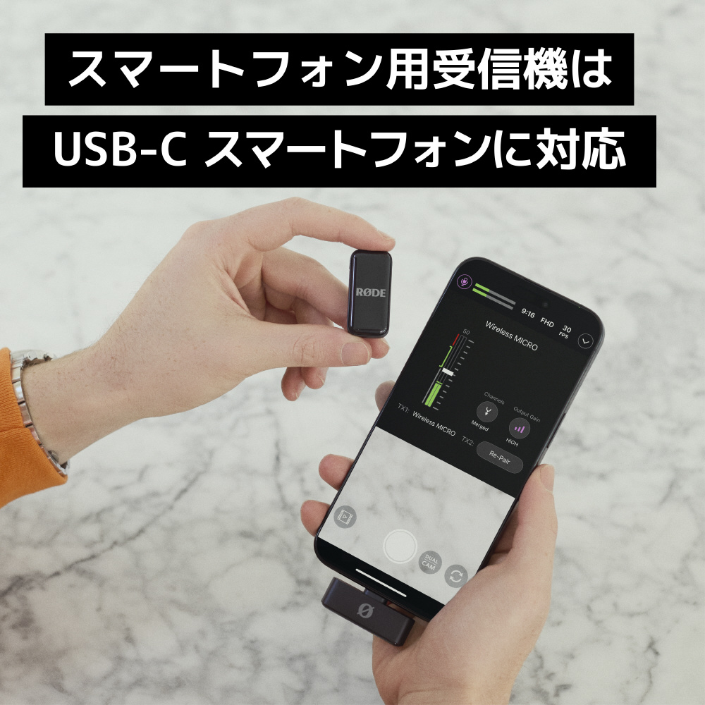 スマートフォン用受信機は、スマートフォンに接続するだけでセットアップ完了。対応するR?DEアプリを使って、細かい設定ができます。