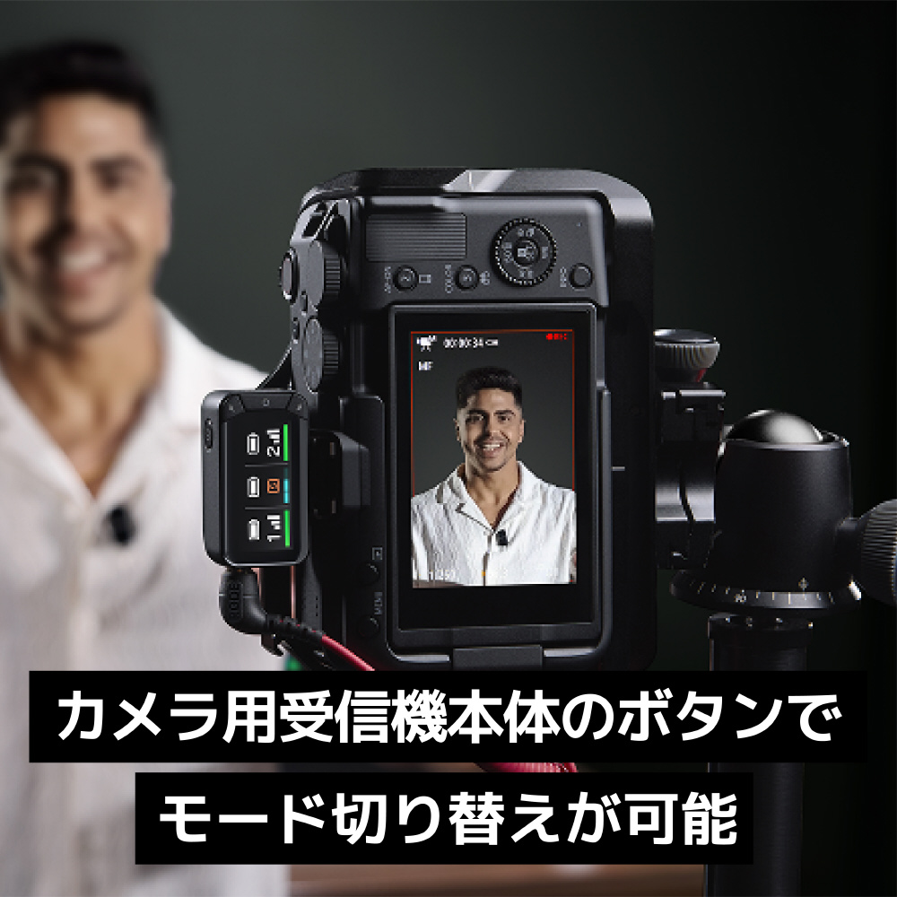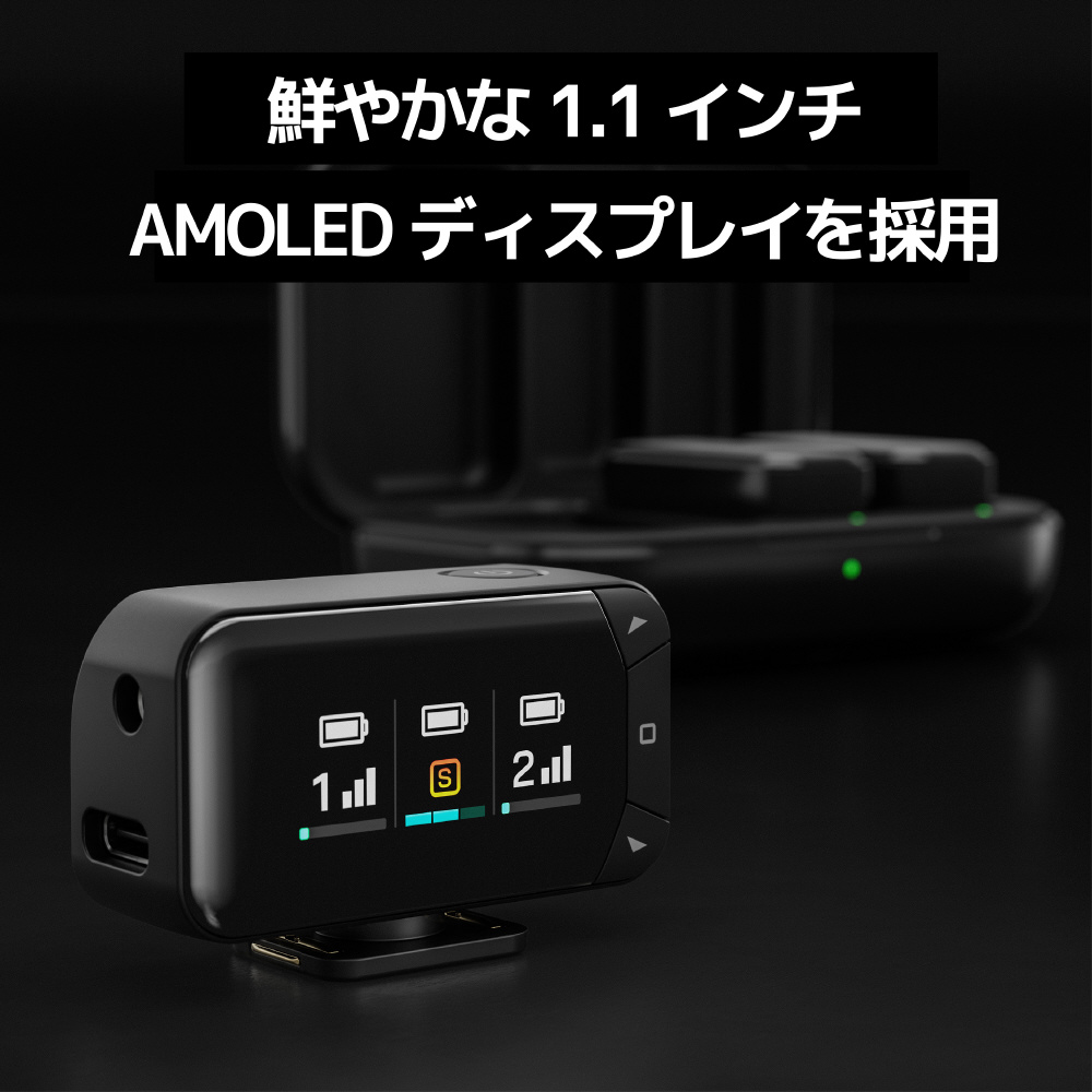 入力ゲインを自動で聞き取りやすいレベルに調整するゲインアシスト機能により、どんな環境でもクリアな音声を録音。カメラ用受信機には1.1インチのAMOLED(アモレッド)画面を搭載し、直感的な操作と素早い設定変更ができます。