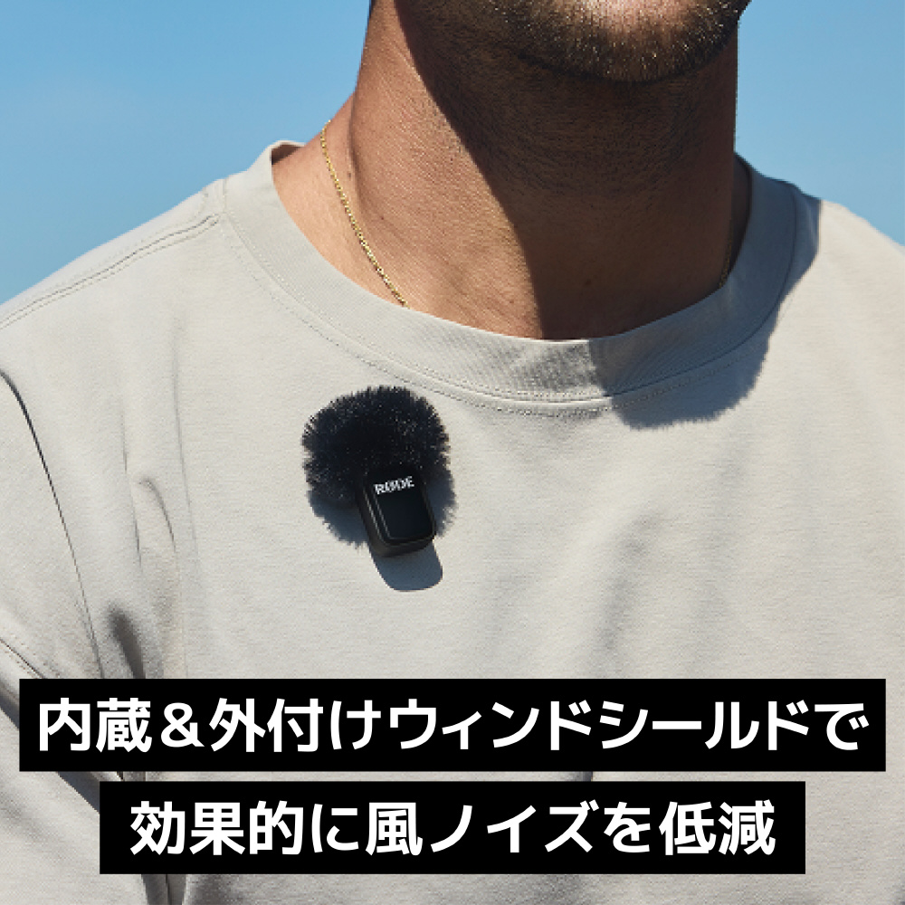 送信機には、高品質マイクを内蔵し、特許出願中のデザインによって風切り音や破裂音を軽減しながら非常にクリアで解像感の高い音声を集音できるように設計されています。