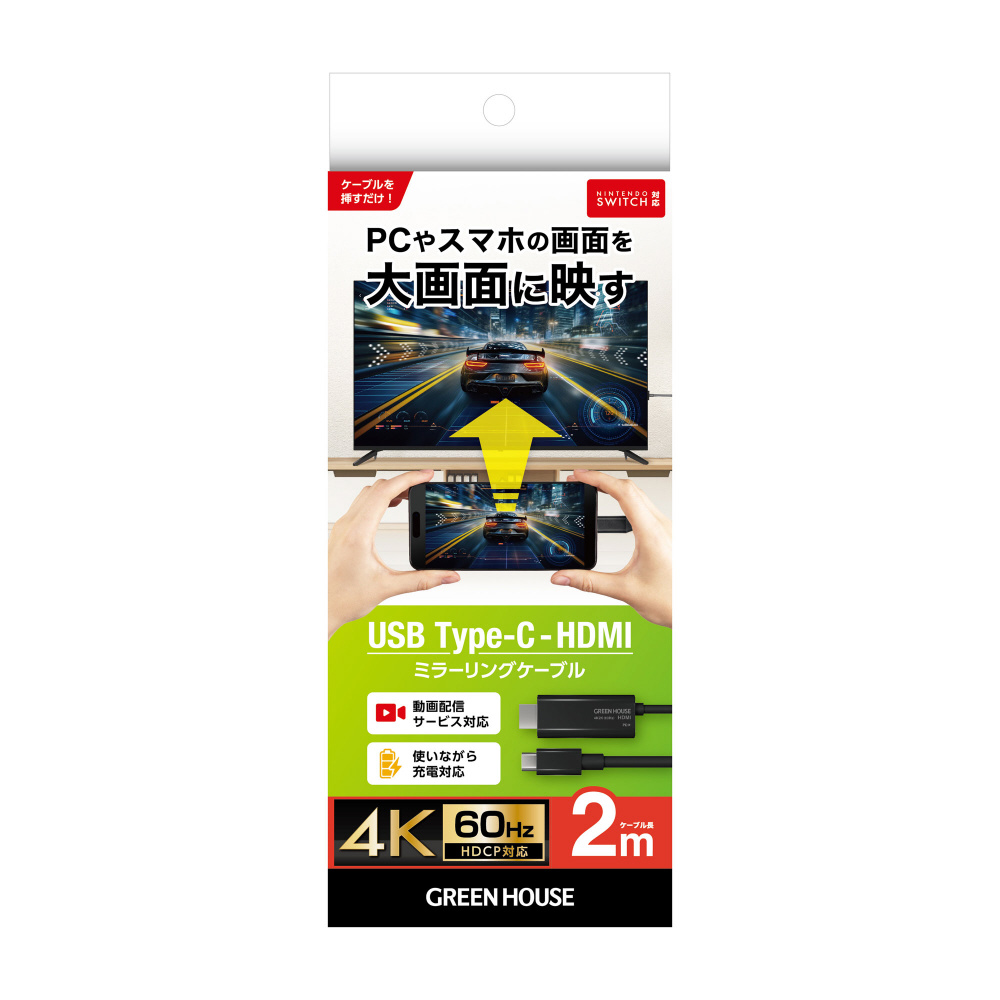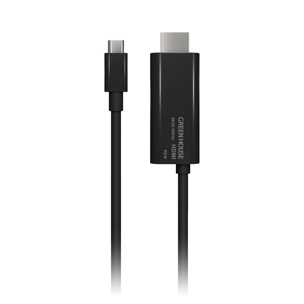 USB-C ⇔ HDMI+USB-Cメス(給電用 PD60W対応)ケーブル [映像 /2.0m /4K] GH-HALTC2-BK [USB-C ⇔ HDMI /4K]