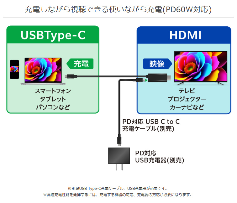 ■充電しながら視聴できる使いながら充電(PD60W対応)