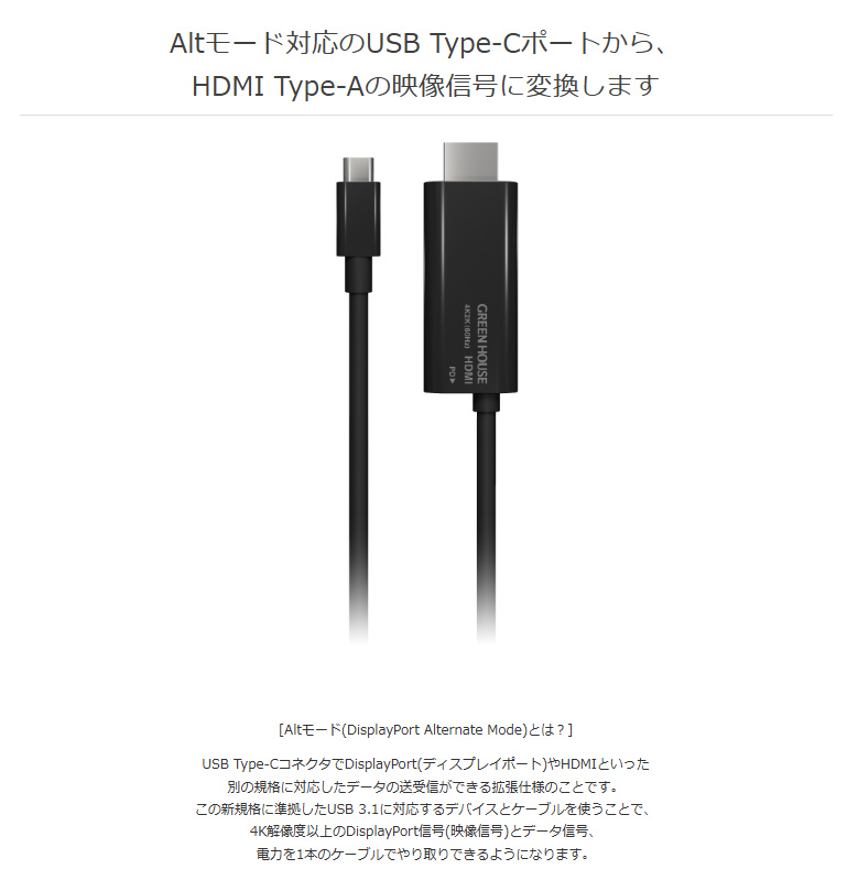 ■Altモード対応のUSB Type-Cポートから、HDMI Type-Aの映像信号に変換します