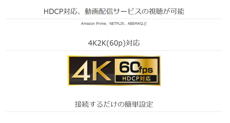 ■HDCP対応、動画配信サービスの視聴が可能(Amazon Prime、NETFLIX、ABEMAなど)