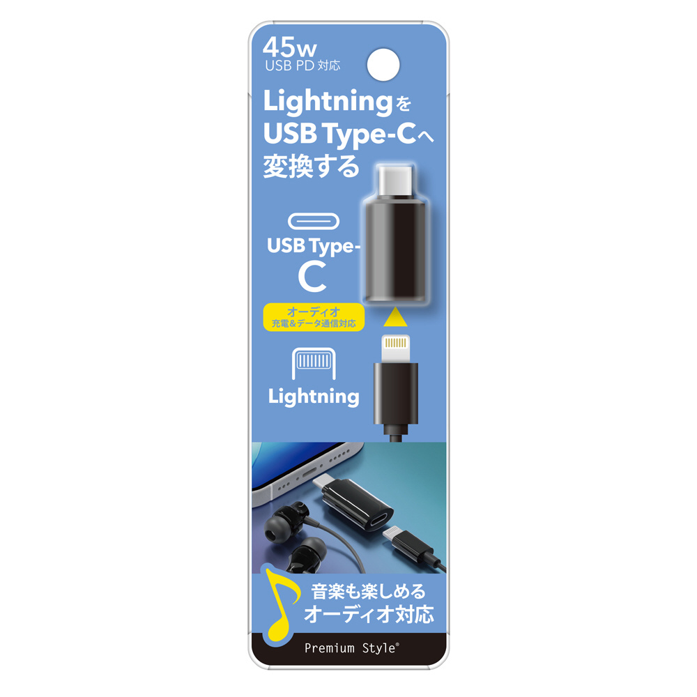 Lightning to USB Type-C 変換アダプタ オーディオ対応 Premium Style ブラック PG-LNCS01BK