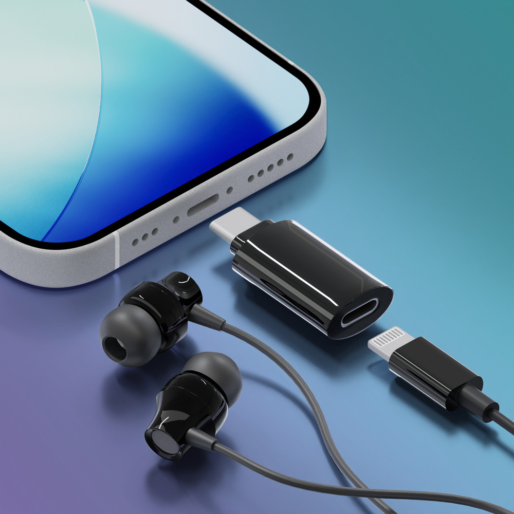 お手持ちのLightningコネクタのイヤホンをUSB Type-Cに変換してご使用頂けます。