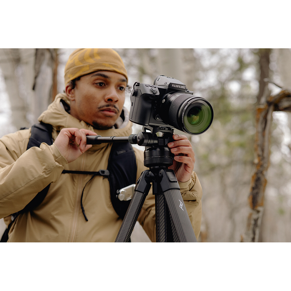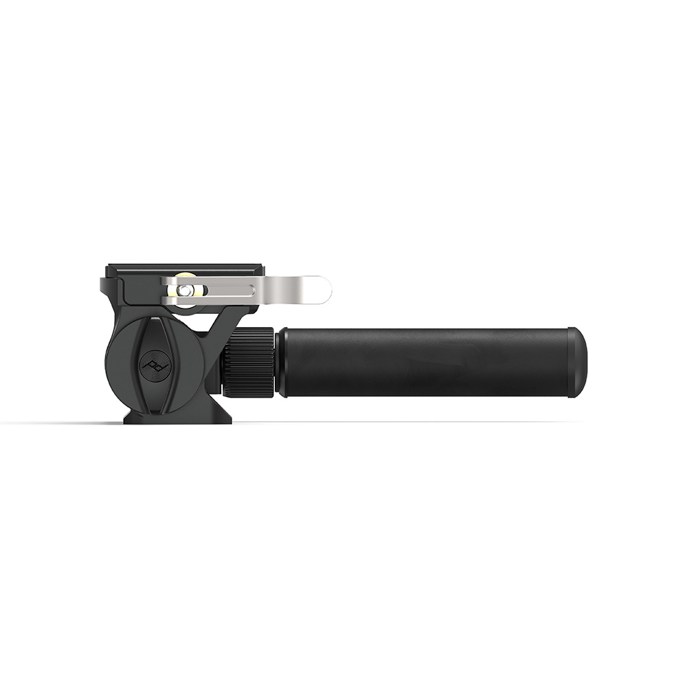 スプリング式カウンターバランスや着脱可能な伸縮式ハンドル(最長36.5cm)を備え、カメラバッグのポケットにコンパクトに収納することができます。