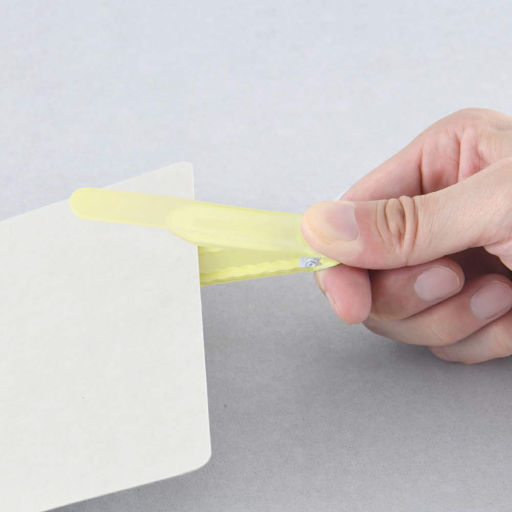 パタパタめくれるクリップ型しおり ページをめくっても、しおり部分が自動で追従して開いたページをしっかりキープするので、読みかけのページを見失いません。クリアなボディで文字が隠れず、読書や筆記の邪魔になりません。クリップ型で、表紙に挟んで仕様するので、なくす心配もありません。