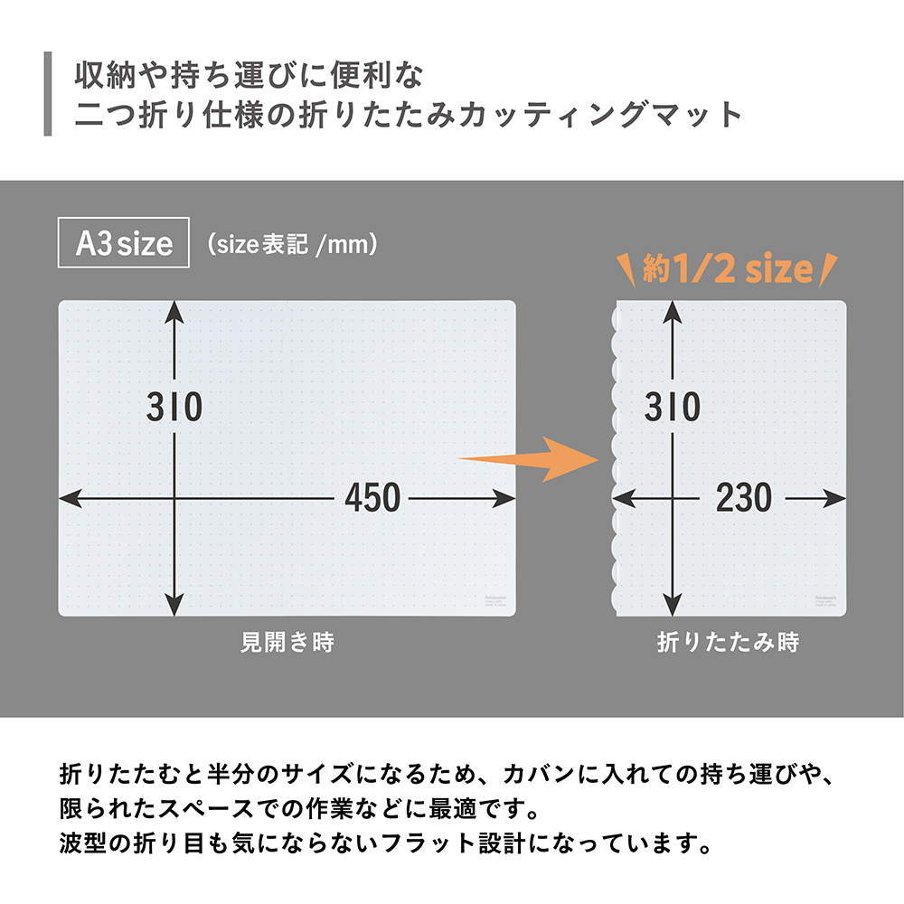 ●半分に折りたたんでコンパクトに持ち運べるカッティングマット