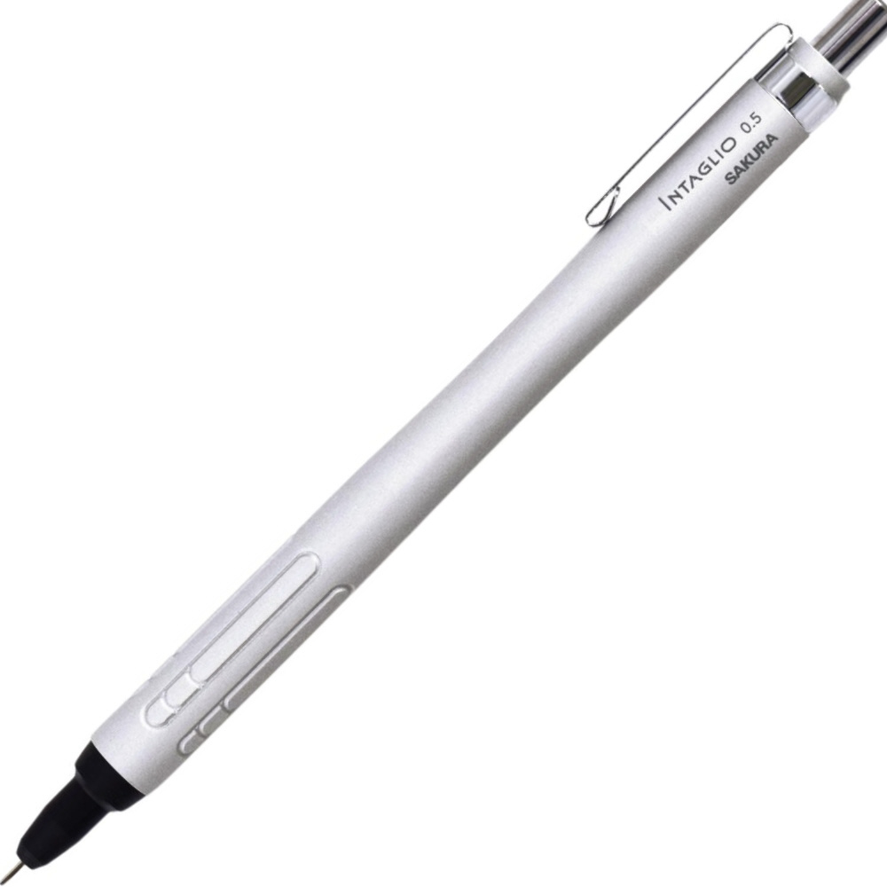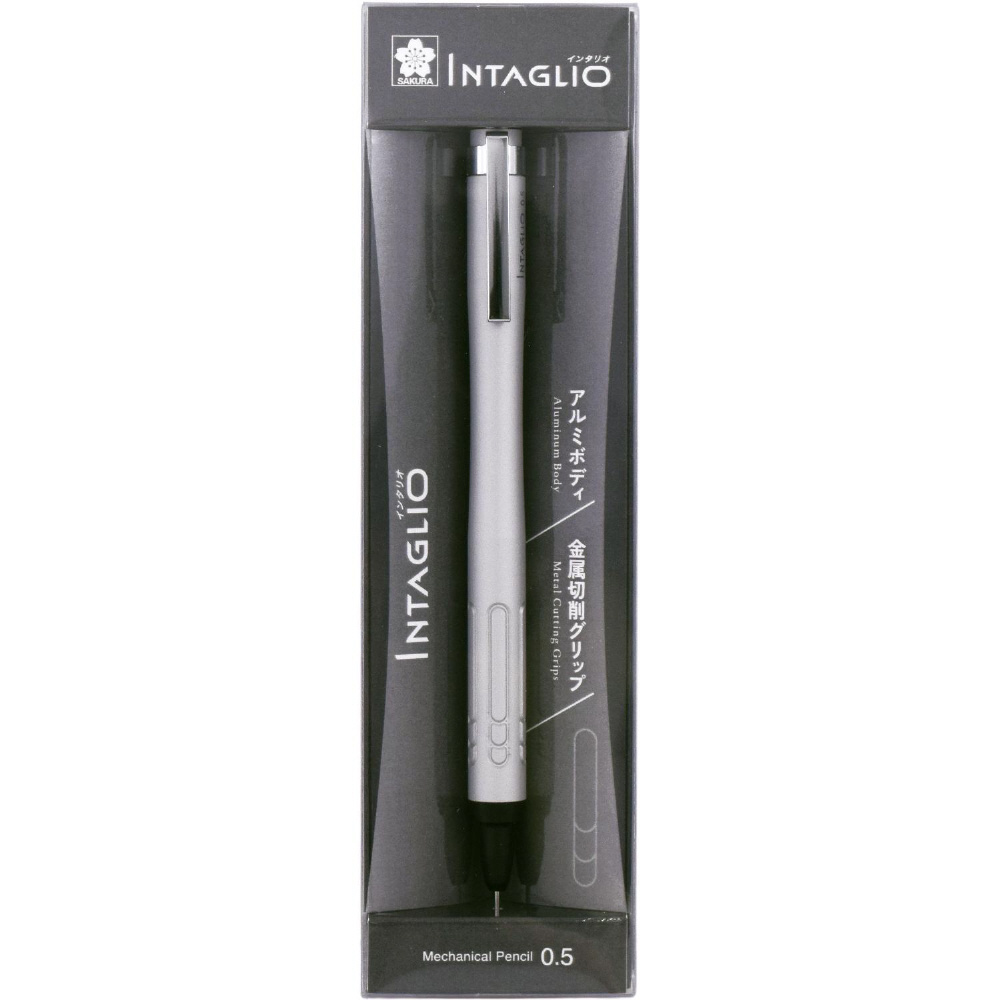 - INTAGLIO インタリオ - 沈み彫り・凹彫りを意味する彫刻・印刷技法、またその技法が施された美術・工芸作品 滑りにくく持ちやすい独自デザインのグリップに、手にフィットする曲線的なアルミボディのシャープペンシル 意欲を高めるワンランク上の筆記具