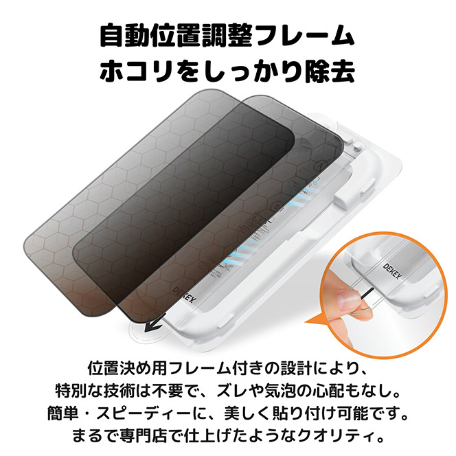 防塵ガイド枠とクリーニングキットが付属し、誰でも簡単に貼り付け可能。位置合わせがしやすく気泡も入りにくい構造で、美しい仕上がりを実現します。