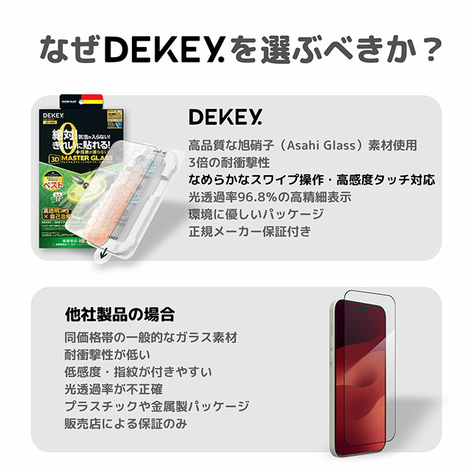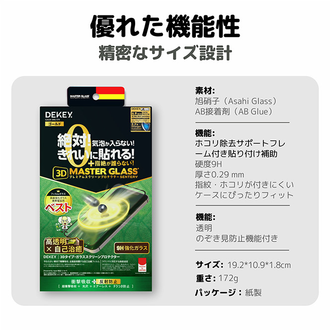 高透過率96.8%の旭硝子製強化ガラスを使用した超薄型フィルム。滑らかな操作感と高い保護性能を兼ね備えたプレミアムモデルです。