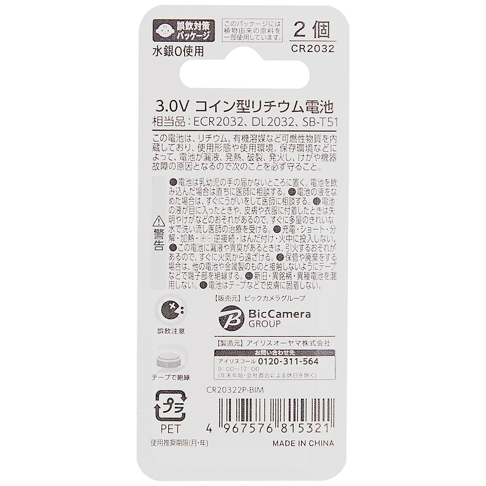 リチウムコイン電池CR2032 2個 CR20322P-BIM [2個]