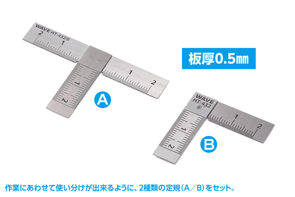 作業にあわせて使い分けが出来るように、2種類の定規(A/B)をセット。