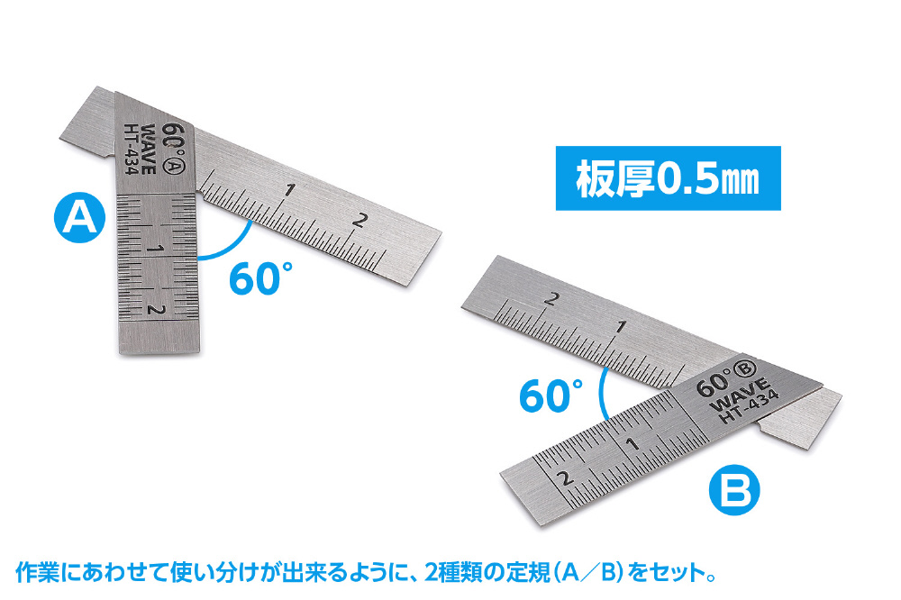 作業にあわせて使い分けが出来るように、2種類の定規(A/B)をセット。